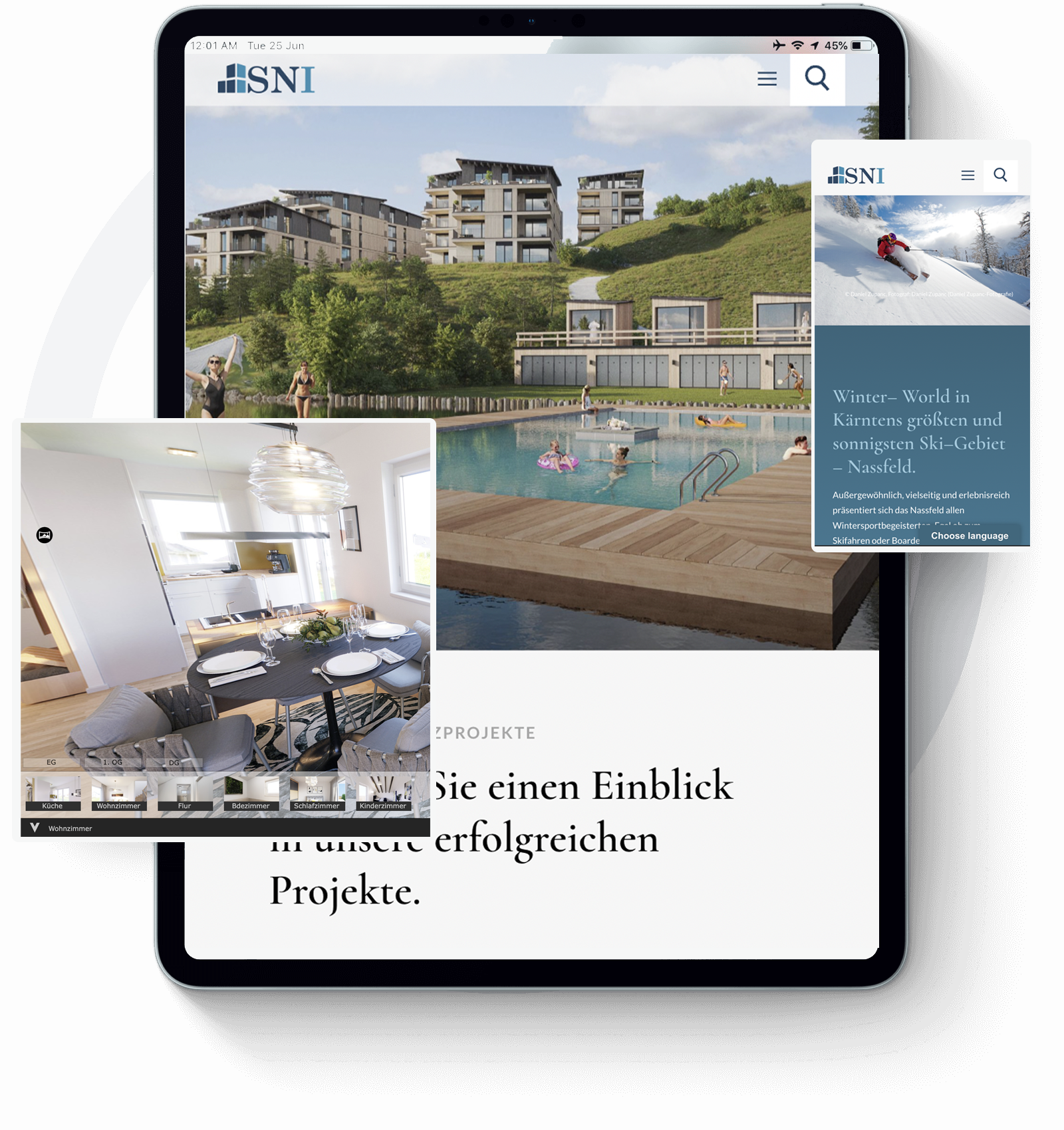 • Optimierung für mobile Geräte im gesamten Projekt (Anpassung an Benutzer von Mobiltelefonen, Tablets und Desktop-Computern)